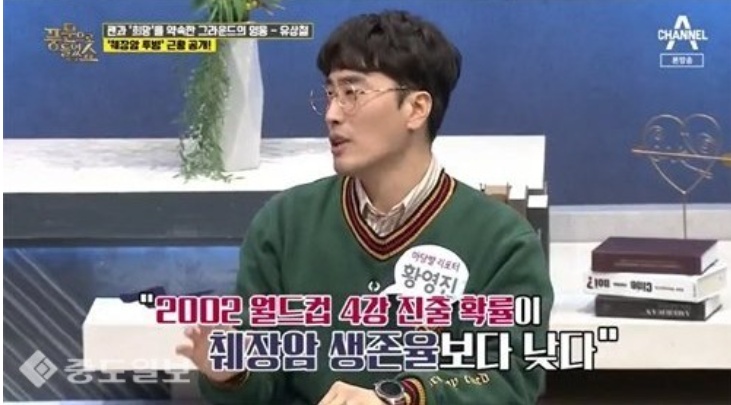선수들이 직접 유상철의 병원비를 지원했다고 전한 뒤 황영진 캐스터는 "축구 관계자 다행히도 황달증세가 반이 사라졌다. 2002 월드컵 4강 진출 확률이 췌장암 생존율보다 낮다"고 말해 유상철의 쾌유를 빌었다.