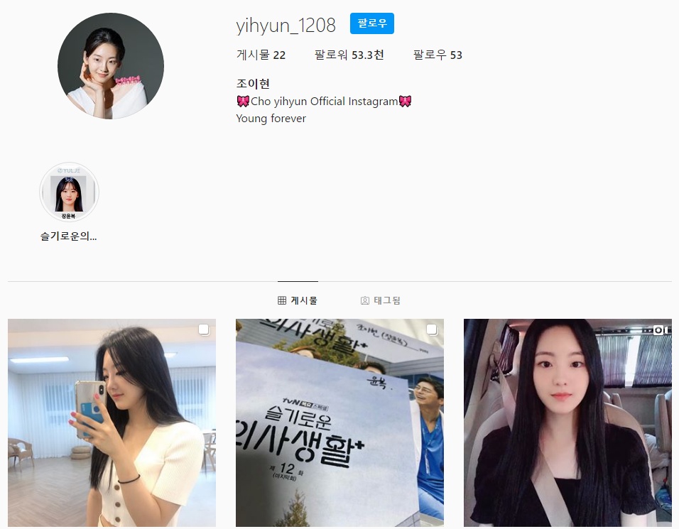 조이현의 SNS를 보면 인턴 역을 맡아 머리를 묶은 모습 대신 긴 머리를 푼 청순한 모습을 확인할 수 있는데 가운 대신 크롭티를 입고 팬들에게 인사를 전하기도 했다.