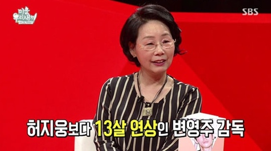 '미우새'에서 서장훈과 한혜진은 허지웅의 모친에게 “변영주 감독이 허지웅보다 13살 연상이다. 두 분이 잘 되면 어떻냐?”고 직접적으로 물었고 이에 허지웅 모친은 “13살이면 너무 많다”고 솔직히 답변하기도 했다.
