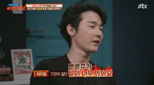변영주 감독은 허지웅이 등장하자 "나이는 저보다 어리지만 좋은 글을 쓰고 생각을 하는 친구다"며 높이 평가했는데 이에 허지웅은 "왜 그래"라고 놀라는 모습을 보이기도 했다.