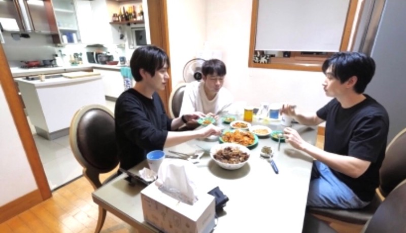 뒤이어 부엌에 들어온 동거인 매니저와 슈퍼주니어 은혁은 규현의 부지런함에 놀라움을 감추지 못했고 이에 규현은 직접 담근 메밀 육수 원액을 자랑스럽게 꺼내보였습니다