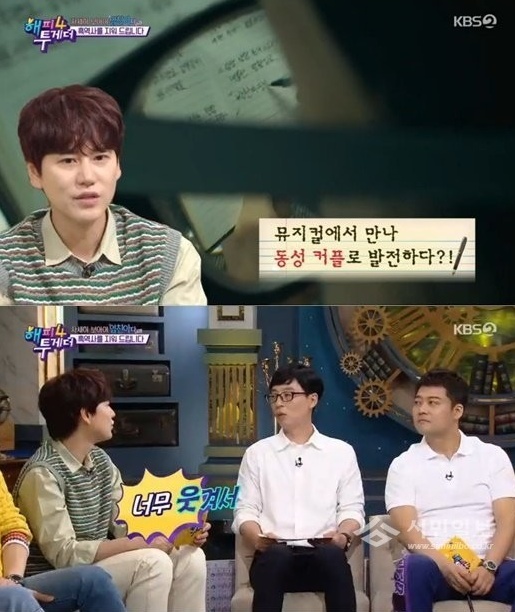 방송에서 MC들은 “뮤지컬 배우와 아이돌 동성 열애설이 돌았다. 그게 엄기준과 규현이라던데”라며 입을 열었다.