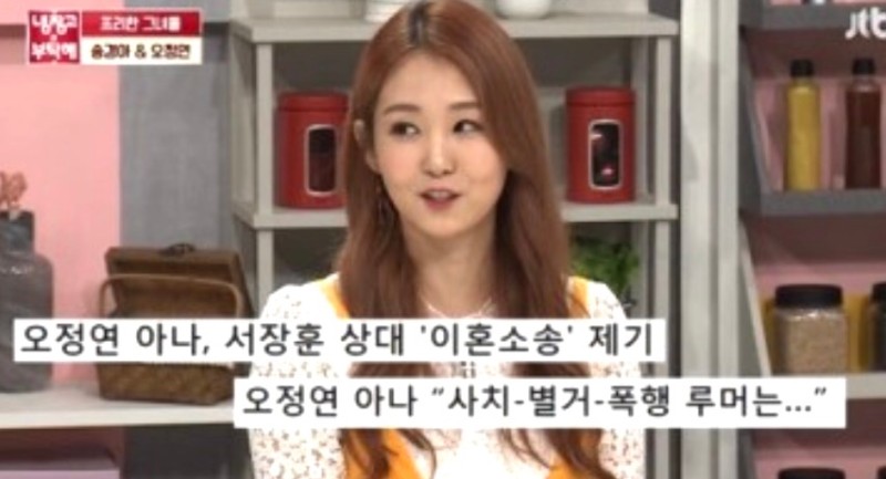 오정연은 과거 서장훈과 결혼 했으나 3년 만에 이혼했는데 오정연은 방송을 통해 이혼 이유에 대한 루머 때문에 프리랜서 선언을 하게 됐다고 밝혔다.