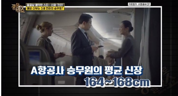 아울러 A항공사 승무원의 평균 신장은164~168cm이며 외국어 능력, 미모, 체력 등을 보면 전진의 이상형에 200%로 부합한 것으로 추측했다.