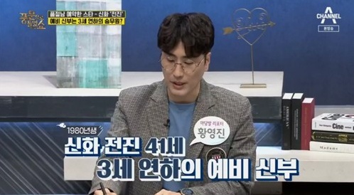 이에 이상준은 "전진의 예비신부는 어떤 사람이냐?"고 물었고, 황영진은 "전진이 41살이고 예비신부가 3살 연하인 38살이다. 그리고 현재 국내 A항공사 승무원이라고"라고 답했다.