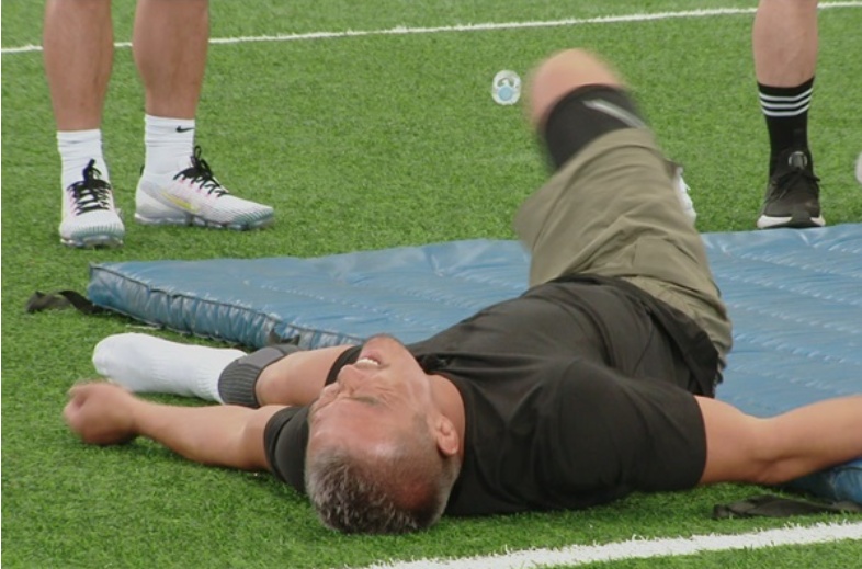 골키퍼 포지션 특성상 몸싸움이 잦은 만큼 하체와 코어 힘을 확인하기 위해 골키퍼 용병 추성훈과 김동현의 버티기 테스트를 각각 진행했고 이에 두 격투기 전설들을 테이트다운(상대 선수를 재빨리 쓰러트리는 기술)시킬 테스트 조력자로 이대훈과 여홍철이 나섰다.