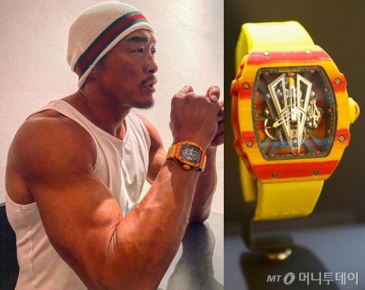 추성훈은 한 손에 노란색 밴드의 시계를 찼는데 그가 착용한 시계는 '리차드밀' 제품으로 전세계 50피스 한정판 제품으로 특히 가격만 8억7000만원에 달하는 것으로 알려져 놀라움을 샀다.