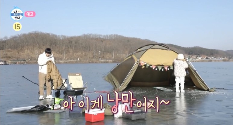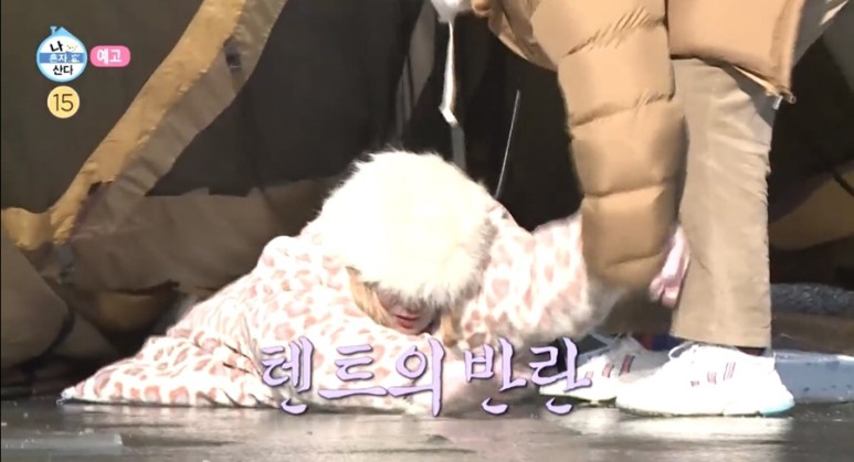 하나씩 짐을 꺼내기 시작한 박나래는 추위에 맞서기 위해 만반의 준비에 돌입했는데 박나래는 "이게 낭만이지"라며 텐트를 쳤다.