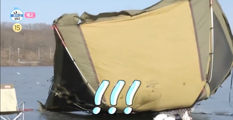 그러나 곧 텐트가 뒤집혔고, 박나래는 밑에 깔렸고 이후 다시 설치한 텐트는 바람에 강 끝까지 날아가 웃음을 자아냈다.