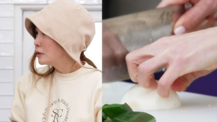 김정은은 재료를 일일이 다 확인하며 "이거 썰어요?"라고 묻는 등 요리에 적극적인 모습을 보였다.