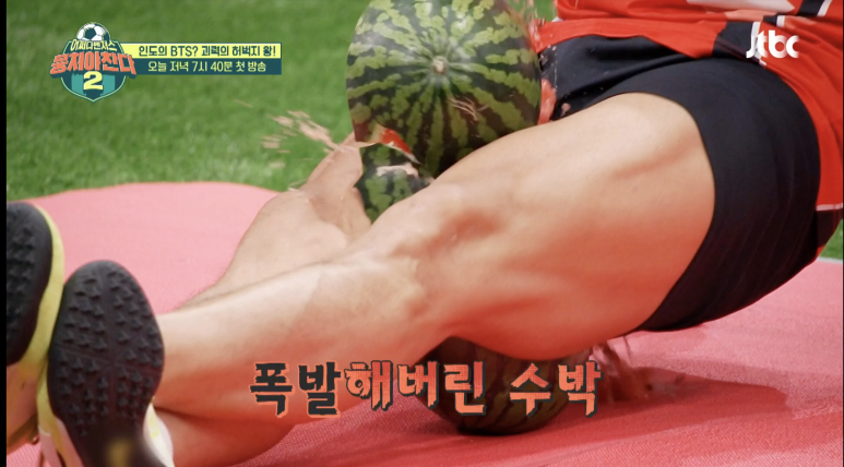 그러나 이장군이 힘을 주자마자 단단한 코어와 허벅지 근육에 수박이 단숨에 박살났고 보고도 믿기지 않는 수박 폭발은 모두의 눈을 번쩍 뜨이게 했다.