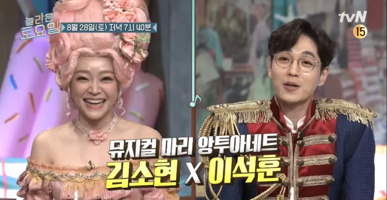뮤지컬에서 `마리 앙투아네트`와 `악셀 폰 페르젠` 역으로 호흡 중인 김소현과 이석훈은 '마리 앙투아네트'를 대표하는 듀엣 넘버 '내가 숨 쉴 곳'을 부르며 '놀토'에 등장했다.