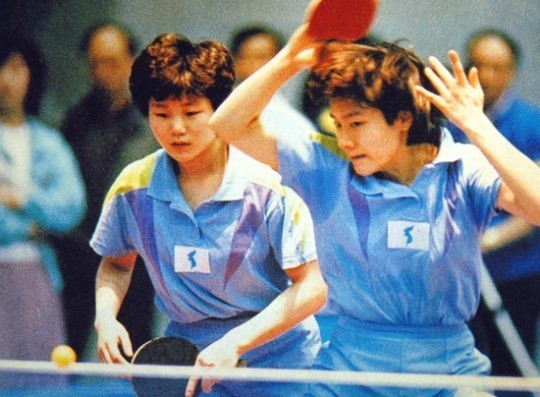 지바 대회에서는 조선민주주의인민공화국과 함께 한반도기를 달고 남북 단일팀으로 참가하여 세계 최강 중국을 꺾고 우승하였으며, 리분희와 함께한 이 대회를 배경으로 2012년 영화 '코리아'가 제작되었다.