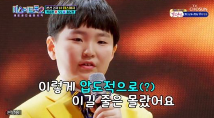 장윤정은 "동물원 가서 화려한 공작새(박성온)를 본 뒤에 집에 가는 길에 야생 꿩(송도현)을 본 느낌"이라며 어린 두 사람의 무대를 칭찬했다.