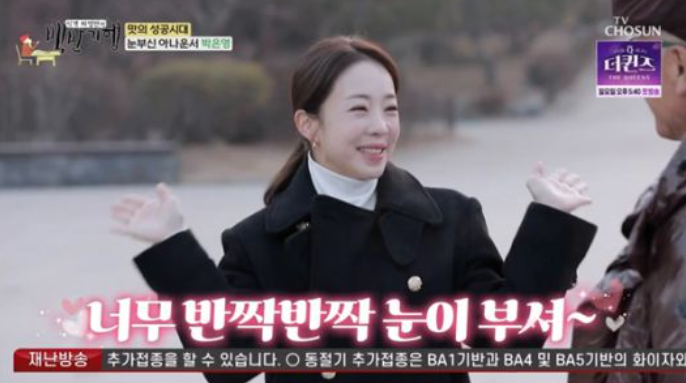 박은영은 허영만에게 "너무 반짝반짝 눈이 부셔"라며 "큰 별이 떨어진 이곳에서 만나 봬서 영광이다"라고 인사했다.