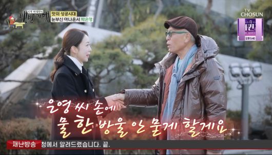 그러자 허영만이 "이 손에 물 한 방울 안 묻히고 하루를 보내도록 하겠다"고 하자 박은영이 "우리 남편이 프러포즈할 때도 안 했던 말을 선생님께서 해주신다"며 웃어보였다.