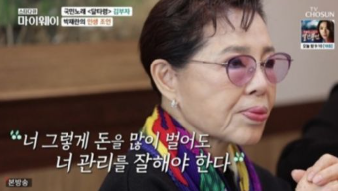 김부자는 박재란을 언급하면서 “언니가 과거 나에게 ‘매니저도 좋고 남편도 좋지만 돈 많이 벌어도 관리를 잘해야 한다’고 조언했다”며 “그때는 어려서 무슨 뜻인지 몰랐는데 살면서 새록새록 생각이 나더라”라고 밝혔다.