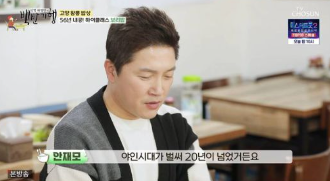 안재모는 "'야인시대'가 벌써 20년이 넘었다. 때로는 이 이미지를 언제쯤 벗나 하는데, 벗을 수가 없다. 한 세 개 채널에서 돌려가면서 방송을 한다"고 체념한 모습을 보여 웃음을 안겼다.