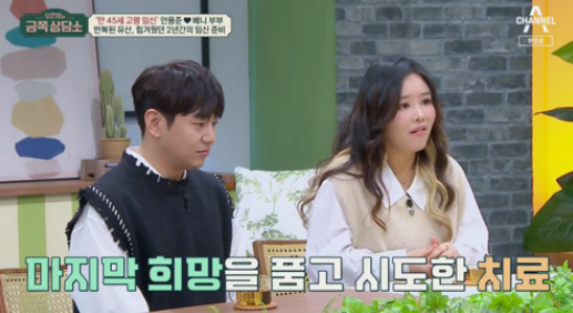 그러면서 “제 나이가 폐경이 시작될 나이다. 병원에서도 임신이 기적 같은 일이라 하더라”라고 털어놨다. 이에 MC 박나래는 “배우 이영애가 마흔살, 최지우가 마흔 다섯살에 고령 출산했다”라고 반응했다.