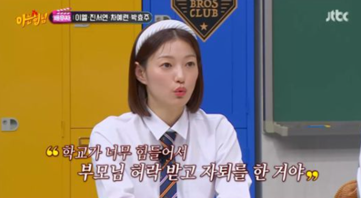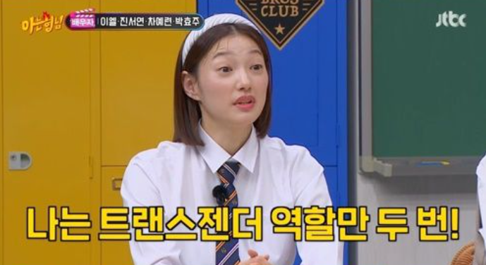 진서연은 "배우들은 내성적인 사람이 많다"며 "초등학교 때 출석부 부르면 대답을 못했다. 학교 가면 실내화 주머니 놓고 다시 밖으로 나왔다. 그만큼 학교가 무서웠다"고 설명했다.