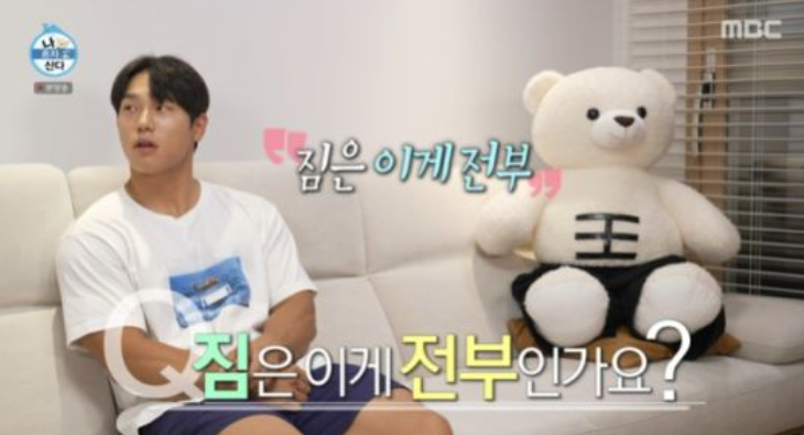 윤성빈은 침대에서 인형을 껴 안고 일어나 눈길을 끌었다. 박나래는 "인형에 이름이 있나"라고 물었고 윤성빈은 "그냥 인형이다. 이름이 없다"라며 "굳이 붙이자면 죽부인 정도"라고 말했다.