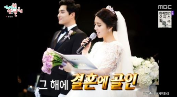 민우혁은 “어느 날 소개해준 친구와 술을 마시고 만취했다. 그 친구가 저를 데리고 이세미가 있는 술자리로 간 거다. 제가 너무 취해서 그 자리에서 춤을 추고 그랬다더라. 근데 이세미는 술을 한 잔도 못 마신다. 혼자 맨정신이었는데 제 옆에서 계속 꿀물을 타주더라. 그러다 만나게 됐다”고 설명했다.