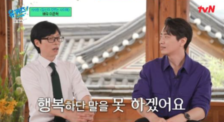유재석은 "준혁 씨가 이 일을 하면서 가장 고통스러운 순간은 언제냐"라며 궁금해했고, 이준혁은 "늘 그렇긴 하다. 제가 징크스가 있다. '행복하다'라는 말을 하면 너무 안 좋은 일이. 가족을 못 보게 된다거나 그래가지고 그 말을 잘 못한다"라며 고백했다.