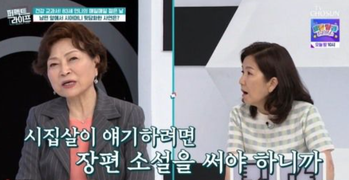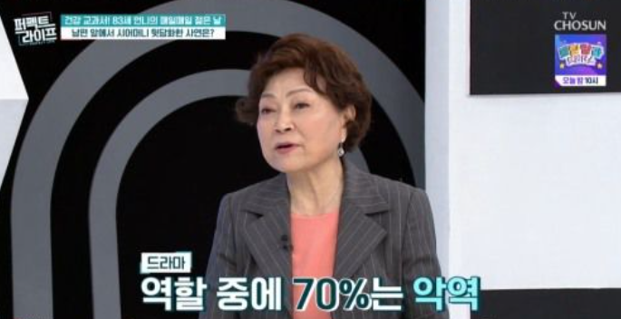 김용림은 “시집살이는 안 하셨냐”라는 질문에 “시집살이 얘기하려면 장편 소설을 써야 한다. 역할 중에서 70%는 악역을 했다. 왜 이렇게 독한 시어머니 연기를 잘하냐고 하는데 우리 시어머니가 모델”이라고 털어놨다.