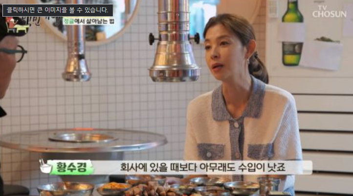 수입에 대해 묻자 황수경은 "솔직히 말씀드리면 회사에 있을 때보다 낫다. 시간 대비 효율이 높다"고 말했다 .그러면서도 "일이 비정기적이라 늘 불안함이 있다. '사람들이 언제까지 나를 찾을까'에 대한 걱정, 고민이 있다"라고 털어놓았다.