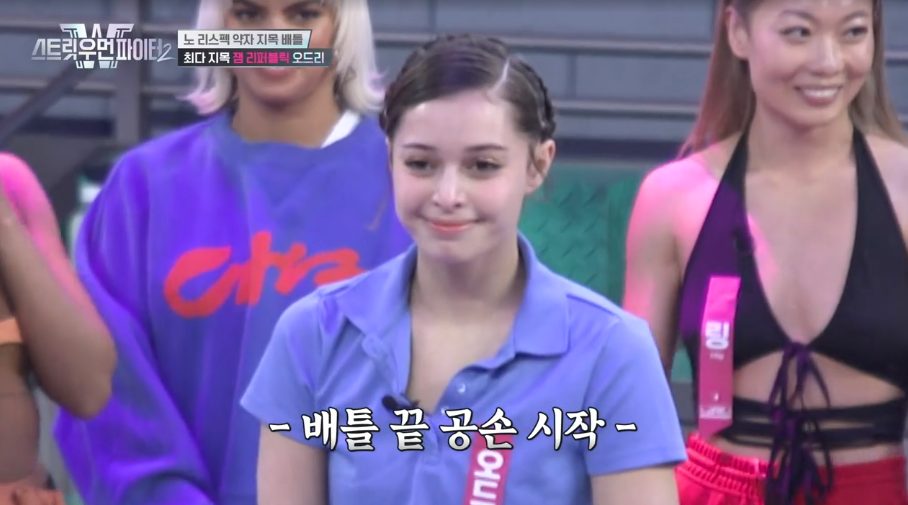 스트릿 우먼 파이터2에 출연하는 여성 댄서들이 모두 강하고 기가 엄청 쎄보이는데 오드리는 태풍 속에서도 고요한 미소로 여유를 가지고 있다.