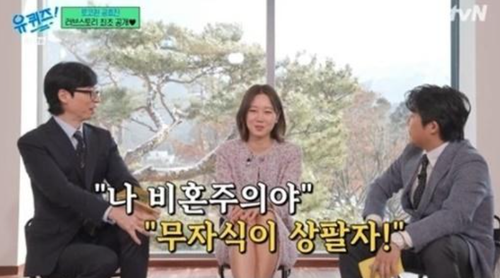 유재석은 "인터뷰에서 효진 씨가 결혼 생각이 없다고 말한 적이 있다. 근데 갑자기 결혼해야겠다는 느낌이 온 거냐"고 물었다.