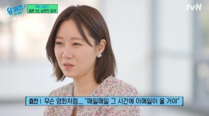 케인 오와 결혼한 공효진은 “혼자 남아 보내야 할 시간들이 너무 걱정된다”라며 “지금 남편이 군대에 가서 혼자 곰신으로 지내야 한다”라고 말해 눈길을 끌었다.