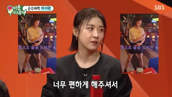 하지원은 '짠한형 신동엽'에 출연해 귀여운 춤을 추고 엉뚱한 매력을 드러내 화제가 됐다. 해당 영상은 조회 수 500만 회를 돌파했다.