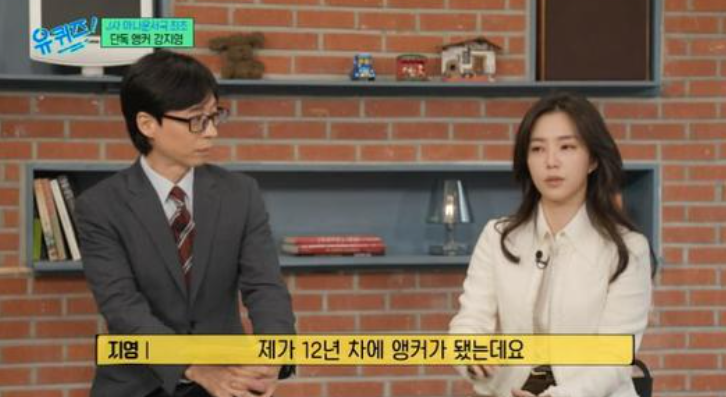 강지영 아나운서는 "제가 12년 차에 앵커가 됐다. 입사를 스물셋에 해서 일찍 시작했다. 12년 차에 앵커가 되기까지 현장도 4년 돌았고, 예능, 시사 교양 안 해본 게 없었다. 제 꿈은 앵커였는데 마지막 12년 차에 이뤘다"라고 전했다.