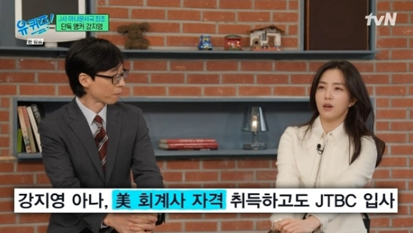 강지영은 미국 회계사 자격을 포기하고 JTBC에 입사해 화제가 됐다.