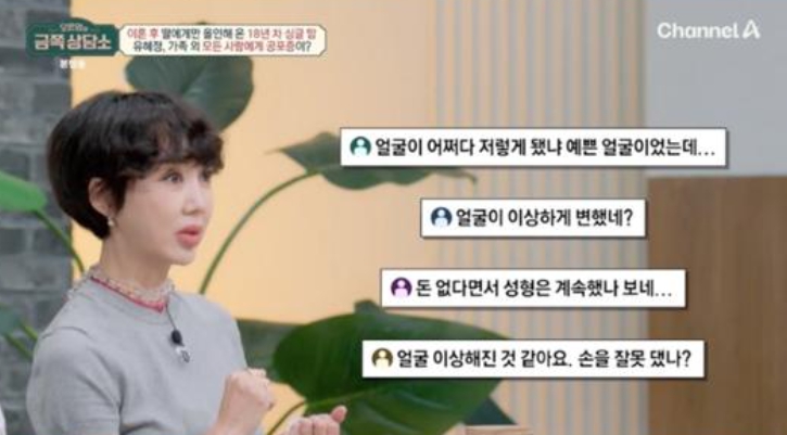 유혜정은 과거 성형 악플, 성형에 대한 상처받는 말로 인해 사진을 찍지 않게 된 이유를 밝혔다.