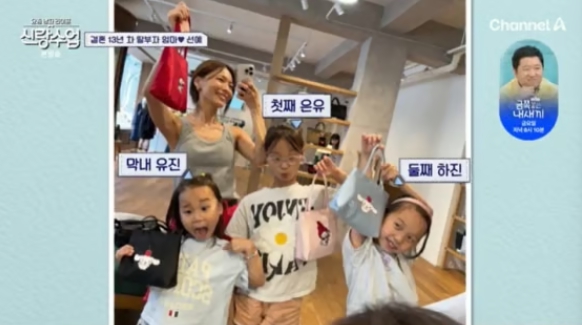 딸 부잣집이지 않냐는 말에 선예는 "딸 셋이다"라며 아이들과 함께 찍은 사진을 공개했다. 심진화가 "그냥 네 자매 같다. 막내가 끼가 대단할 것 같다"고 하자 선예는 "막내 때문에 웃는다"고 말했다.